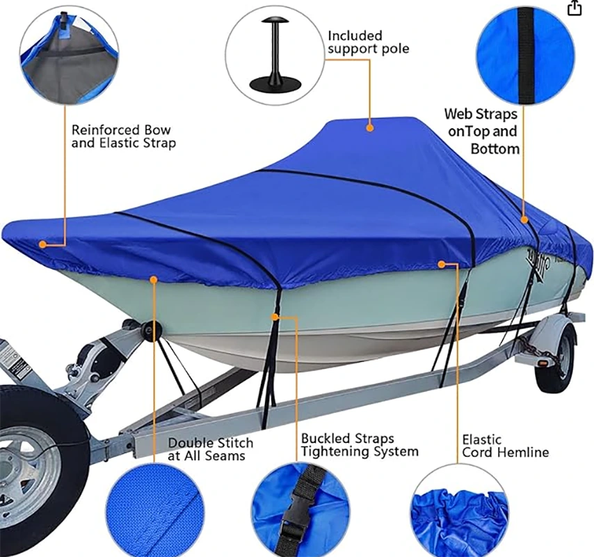 ਬੀਮ ਚੌੜਾਈ ਵਾਟਰਪ੍ਰੂਫ ਬੋਟ ਕਵਰ ਯਾਚ ਕਵਰ, ਟ੍ਰੇਲਰਬਲ ਬੋਟ ਕਵਰ, 600 ਡੀ ਹੈਵੀ ਡਿਊਟੀ ਬੋਟ ਕਵਰ ਫਿੱਟ ਵੀ-ਹੱਲ ਸੈਂਟਰ ਕੰਸੋਲ ਬੋਟ 20 ਫੁੱਟ-22 ਫੁੱਟ ਲੰਬੀ ਅਤੇ ਬੀਮ ਦੀ ਚੌੜਾਈ 116 ਇੰਚ ਤੱਕ, ਵਿੰਡਸ਼ੀਲਡ ਦੀ ਉਚਾਈ 30 ਇੰਚ ਤੱਕ, ਬੋਟ ਕਵਰ ਸਪੋਰਟ।