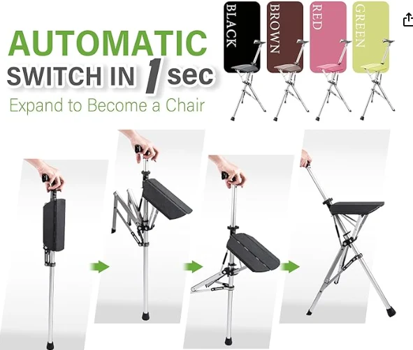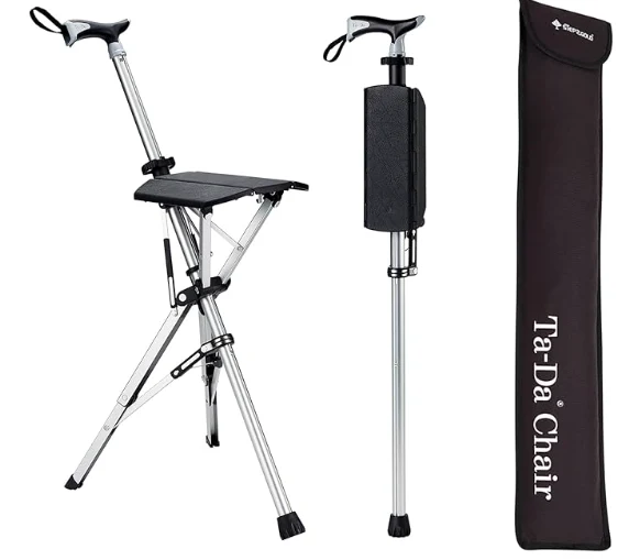 ਪੁਰਾਣੇ ਆਦਮੀ ਅਲਾਪਲਸਟੋਕ ਟੈਂਕਿੰਗ ਟੈਂਕਿੰਗ ਟੈਂਕਿੰਗ ਕੈਨਕ, ਅਰਾਮ ਅਤੇ ਇੱਕ ਹਾਈਕਿੰਗ ਸਟਿਕ ਸਹਾਇਤਾ ਲਈ. ਇਹ ਡਿਜ਼ਾਈਨ, ਜੋ ਤੁਰੰਤ ਇੱਕ ਸਨੈਪ ਨਾਲ ਇੱਕ ਕੁਰਸੀ ਵਿੱਚ ਇੱਕ ਕੁਰਸੀ ਵਿੱਚ ਕਾਇਮ ਵਿੱਚ ਬਦਲਦਾ ਹੈ, ਥੱਕੀਆਂ ਲੱਤਾਂ ਅਤੇ ਇੱਕ ਪਲ ਦੇ ਨੋਟਿਸ ਤੇ ਗੋਡਿਆਂ ਲਈ ਆਰਾਮ ਕਰਦਾ ਹੈ.