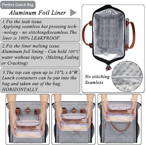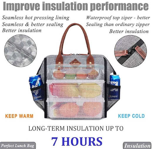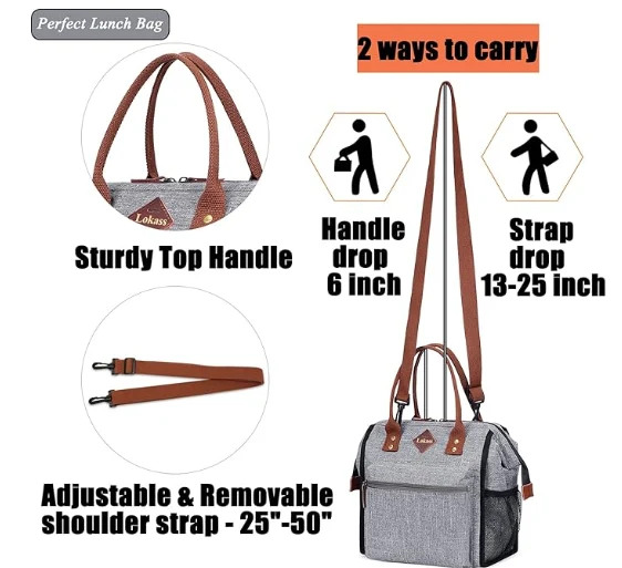 ਵੱਡੇ ਦੁਪਹਿਰ ਦੇ ਖਾਣੇ ਦਾ ਬੈਗ ਦਾ ਮੁੱਖ ਡੱਬਾ ਹੈ (10.5 "x6" x11 "), ਇੱਕ ਵੱਡਾ ਫਰੰਟ ਜ਼ਿੱਪਰ ਜੇਬ (8" 9.5 "x6.5") ਅਤੇ 2 ਸਾਈਡ ਜਾਲ ਜੇਬਾਂ. ਚੋਟੀ ਦੇ ਹੈਂਡਲਜ਼ ਅਤੇ ਅਸੁਰੱਖਿਅਤ ਅਤੇ ਹਟਾਉਣ ਯੋਗ ਮੋ shoulder ੇ ਨੂੰ ਅਸਾਨ ਕੈਰੀ ਲਈ ਡਿਜ਼ਾਈਨ.